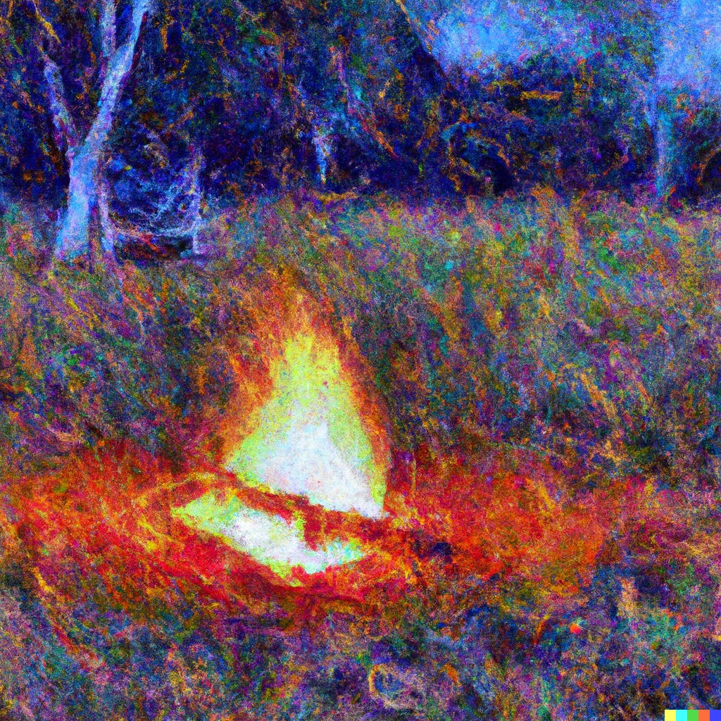 Impressionist painting of a campfire, rendered by Dall-E