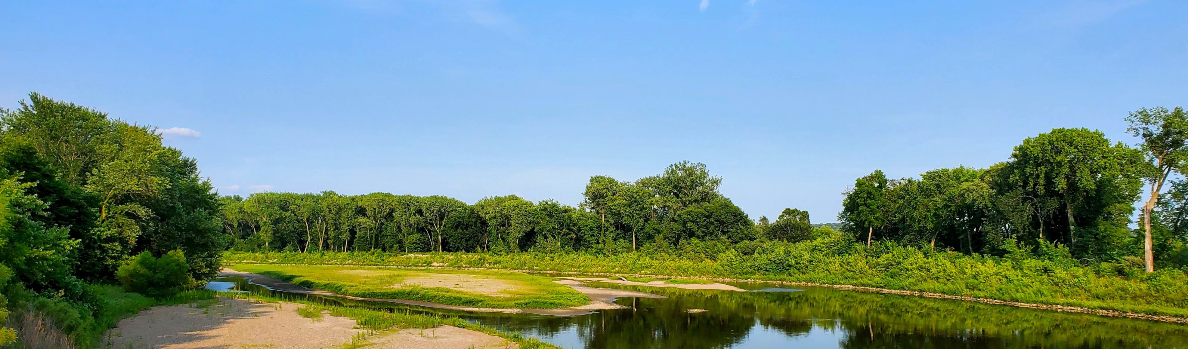 Des Moines sits at the confluence of two rivers, the Des Moines and the Raccoon. And because of a long-running drought, more than half of the state of Iowa is in some state of moderate to extreme drought -- including the watersheds for both of those rivers. The result is that the Raccoon River is barely a neighborhood stream rather than the meaningful river (and major source of drinking water) to which Central Iowans are accustomed.